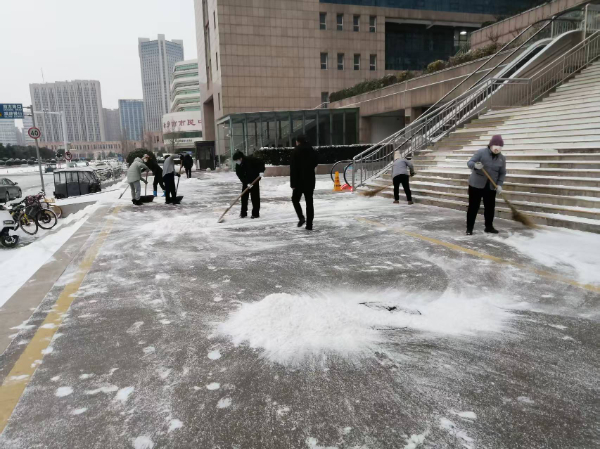 在班子成员带动下,中心干部职工也积极参与,大家分工配合,重点清扫大门出入口、群众办事通道和车辆主干道。全力奋战后,被积雪覆盖的道路慢慢露了出来,干净通畅的小路在白雪中格外显眼,给来办公、办事的人筑牢了安全防线。