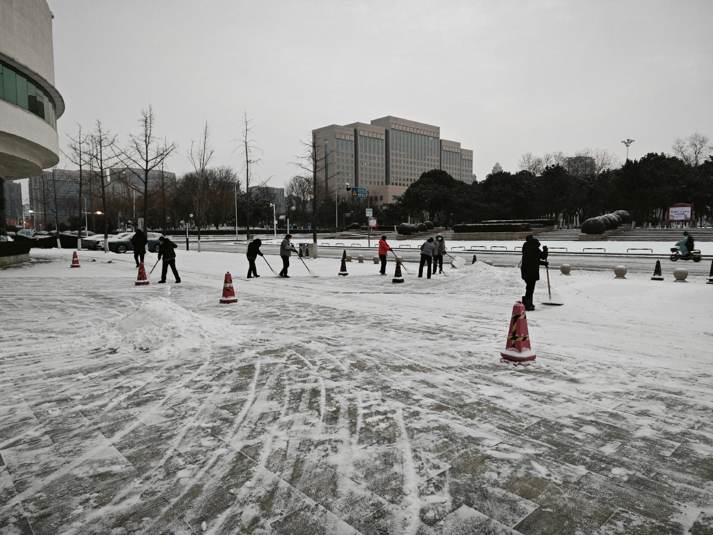 面对新一轮的极端天气灾害,中心迅速部署应对工作:一方面组织工作人员全面排查安全隐患,对辖区内办公场所的水电暖管线、消防设施、外部墙体以及高空建筑逐一进行排查,调试供暖设备,确保办公区域正常工作有序开展,外部区域避免出现高空坠物等安全问题;另一方面备足铁锹、扫帚、防滑垫等应急物资,在各办公区出入口、台阶这些容易滑的地方铺好防滑垫、摆上警示牌。同时,通过微信工作群及时发布预警和安全提示,提醒大家注意防寒防滑。
